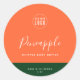 This round product label featuring calligraphy script has fully editable colors. You can change the background color and the bottom rectangle color by clicking customize.