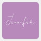 Calligraphy Elegant Lavender Plain Simple Name Square Sticker
