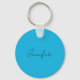 Calligraphy Elegant Plain Simple Name Blue Key Ring