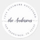 Chic, modern and simple family name return address classic round sticker with your family name in dark blue handwritten elegant script calligraphy on a white background. Simply add your name and address. Exclusively designed for you by Happy Dolphin Studio. If you need any help or matching products please contact us at happydolphinstudio@outlook.com. We're happy to help you make your wedding the most beautiful day!