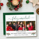 Calligraphy Feliz Navidad 3 Photo Red Holly Green Holiday Card