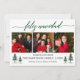Modern Calligraphy Script Feliz Navidad 3 Photo Merry Christmas Holiday Card includes Watercolor Pine Trees - Forest Green Script