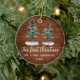Calligraphy First Christmas Rustic Wood Two Pines Ceramic Tree Decoration