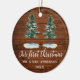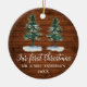 Modern Elegant Calligraphy Script, Watercolor Pine Trees, Our First Christmas Mr. and Mrs. Wedding Couple Ornament - Rustic Country Wood