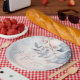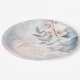 A handwritten, signature font combined with a modern sans serif is used in this floral stationery collection to set a warm and intimate tone for your wedding. The paper plate shown here features 'Mr & Mrs' calligraphy with your married names and wedding date on a background of lush flowers and foliage in shades from dusty blue to soft pink blush. Search ID771 to see other pieces and colour choices for this set.