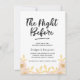 This rehearsal dinner invitation features a black brush calligraphy heading and a faux gold and pink watercolor floral arrangement. This rehearsal dinner invitation is ideal for a couple looking for a simple design. The flowers are watercolor with some faux gold texture leaves and details. The back of the invitation features a faux gold irregular polka dot pattern on a white background. This rehearsal dinner invitation is ready to be personalised. For more rehearsal dinner invitation designs please visit the store.