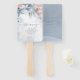 A handwritten, signature font combined with a modern sans serif is used in this floral stationery collection to set a warm and intimate tone for your wedding. The wedding hand fan shown here features your ceremony details and a border of lush flowers and foliage in shades from dusty blue to soft pink blush against a background of dreamy watercolor paint splashes. Add your names and monogram on a simple watercolor background of dusty blue to complete the reverse. Search ID771 to see other pieces and colour choices for this set.