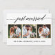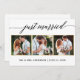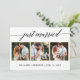 Modern Elegant Calligraphy Script Just Married Wedding 3 Photo Wedding Announcement Card