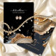 A modern, minimalist gold and black agate stylish luxury jewellery earring display with elegant modern calligraphy and modern simple hand lettering style typography , all text are customisable, add your social media, website and email on the backside.