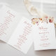This calligraphy graceful floral folded wedding program is perfect for a rustic wedding. The design features dainty watercolor white, burgundy, pink roses and fall leaves.