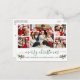 Modern Calligraphy Script 5 Photo Family Photo Collage Merry Christmas Postcard includes Watercolor Christmas Holly Berries - Forest Green Script