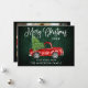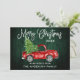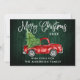 Rustic Green Wood - Modern Fun Calligraphy Script Watercolor Vintage Red Truck with Christmas Tree - Merry Christmas Card with Photo Back