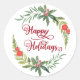 Calligraphy Happy Holidays botanical wreath Classi Classic Round Sticker