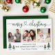 Modern Calligraphy Gold Foil Script 3 Photo Family Photo Collage Merry Christmas Card includes Watercolor Pine Trees - Your Photos in Gold Foil Frames with a Forest Green Back