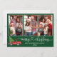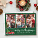 Modern Calligraphy Heart Script 3 Photo Family Photo Collage Merry Christmas Card - Watercolor Vintage Red Truck with Christmas Tree - Forest Green Background