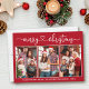 Calligraphy Heart 3 Photo Red Merry Christmas Holiday Card