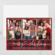 Calligraphy Heart 3 Photo Red Plaid Christmas Holiday Card