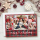 Modern Calligraphy Heart Script 5 Photo Family Photo Collage Merry Christmas Card - Red Plaid
