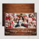 Modern Calligraphy Heart Script 5 Photo Family Photo Collage Merry Christmas Card includes Watercolor Red Holly Berries - Rustic Country Wood Print