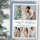Modern Calligraphy Heart Script Merry Christmas 4 Photo Holiday Card - Dusty Blue Script