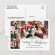 Modern Calligraphy Heart Script Merry Christmas 4 Photo Holiday Postcard - Green