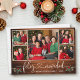 Modern Calligraphy Heart Script 5 Photo Family Photo Collage Feliz Navidad Merry Christmas Card includes Watercolor Christmas Red Holly Berries - Rustic Country Wood
