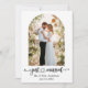 Modern Minimalist Simple Calligraphy Heart Script Just Married Photo Wedding Announcement Card - Arch Photo Frame - Black & White