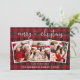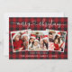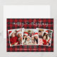 Modern Calligraphy Heart Script Merry Christmas 3 Photo Holiday Card - Red Buffalo Plaid