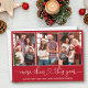 Modern Calligraphy Heart Script 3 Photo Family Photo Collage More Cheer This Year Holiday Card - Red