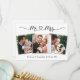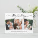 Modern Minimalist Simple Calligraphy Script Mr. and Mrs. Heart Wedding Bride and Groom 3 Photo Thank You Card