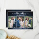 Modern Minimalist Simple Calligraphy Script Heart Mr. and Mrs. Wedding Bride and Groom 3 Photo Thank You Card - Rustic Country Blue Wood