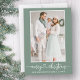 Modern Calligraphy Heart Script Merry Christmas Photo Holiday Card - Sage Green Background