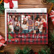 Modern Calligraphy Heart Script 3 Photo Family Photo Collage Rustic Red Buffalo Plaid Merry Christmas Postcard - Watercolor Vintage Red Truck with Christmas Tree
