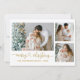 Calligraphy Heart Script Christmas Gold 3 Photo Holiday Card