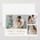 Modern Calligraphy Heart Script Merry Christmas 3 Photo Holiday Card - Gold Text