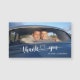 Flat horizontal wedding thank you magnetic card. The text "Thank you" is written in a curvy font with joined heart.