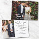 Modern Calligraphy Heart Script Wedding Bride and Groom 2 Photos Thank You Card