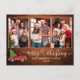 Modern Calligraphy Heart Script 3 Photo Family Photo Collage Rustic Wood Merry Christmas Postcard - Watercolor Vintage Red Truck with Christmas Tree