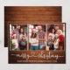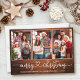 Modern Calligraphy Heart Script 3 Photo Family Photo Collage Merry Christmas Card - Rustic Country Wood Print