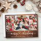 Modern Calligraphy Heart Script 5 Photo Family Photo Collage Merry Christmas Card - Rustic Country Wood Print