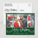 Modern Fun Calligraphy Script 5 Photo Couple Photo Collage Merry Christmas Postcard includes Watercolor Christmas Holly Berries - Forest Green Background