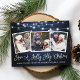 Modern Fun Calligraphy Script Have a Holly Jolly Christmas 3 Photo Holiday Postcard - Rustic Country Blue Wood and String Lights