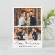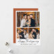 Modern Trendy Calligraphy Ink Script 3 Photo Family Photo Collage Happy Thanksgiving Card - Terracotta Burnt Orange Back