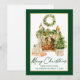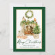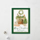 Modern Elegant Calligraphy Ink Script Watercolor Tree Kraft Merry Christmas Card - Green Script, Gold Frame