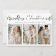 Modern Minimalist Elegance Calligraphy Ink Pen Handwritten Script Merry Christmas 3 Photo Holiday Card includes Watercolor Eucalyptus Leaves.