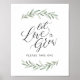 Let love grow sign, features modern calligraphy and rustic watercolor greenery leaves design, chic and elegant.