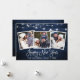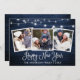 Calligraphy Lights Blue Wood 3 Photo New Year Holiday Card