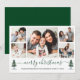 Modern Calligraphy Script Merry Christmas 5 Photo Holiday Card includes Watercolor Pine Trees - Forest Green Script