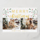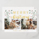 Calligraphy Merry Christmas Cherry Two Photo Foil Holiday Card