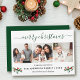 Calligraphy Merry Christmas Holly 3 Photo Green Holiday Card